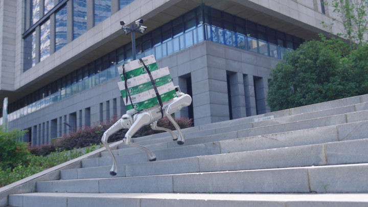 MagicDog Y1全地形能力优秀,可攀爬45°斜坡、跨越最高达60厘米台阶,也可完成双腿倒立下楼梯等高难度动作,在砂石、草地、浅滩等复杂场景中依然如履平地。Y1搭载多模态传感器,结合感知融合与动态控制系统,实现全域环境理解与实时路径规划;同时依托优秀的平衡控制与运动算法,面对复杂路况与高强度外界冲击等,Y1亦可保持平衡稳定,是实至名归的“全地形王者”。